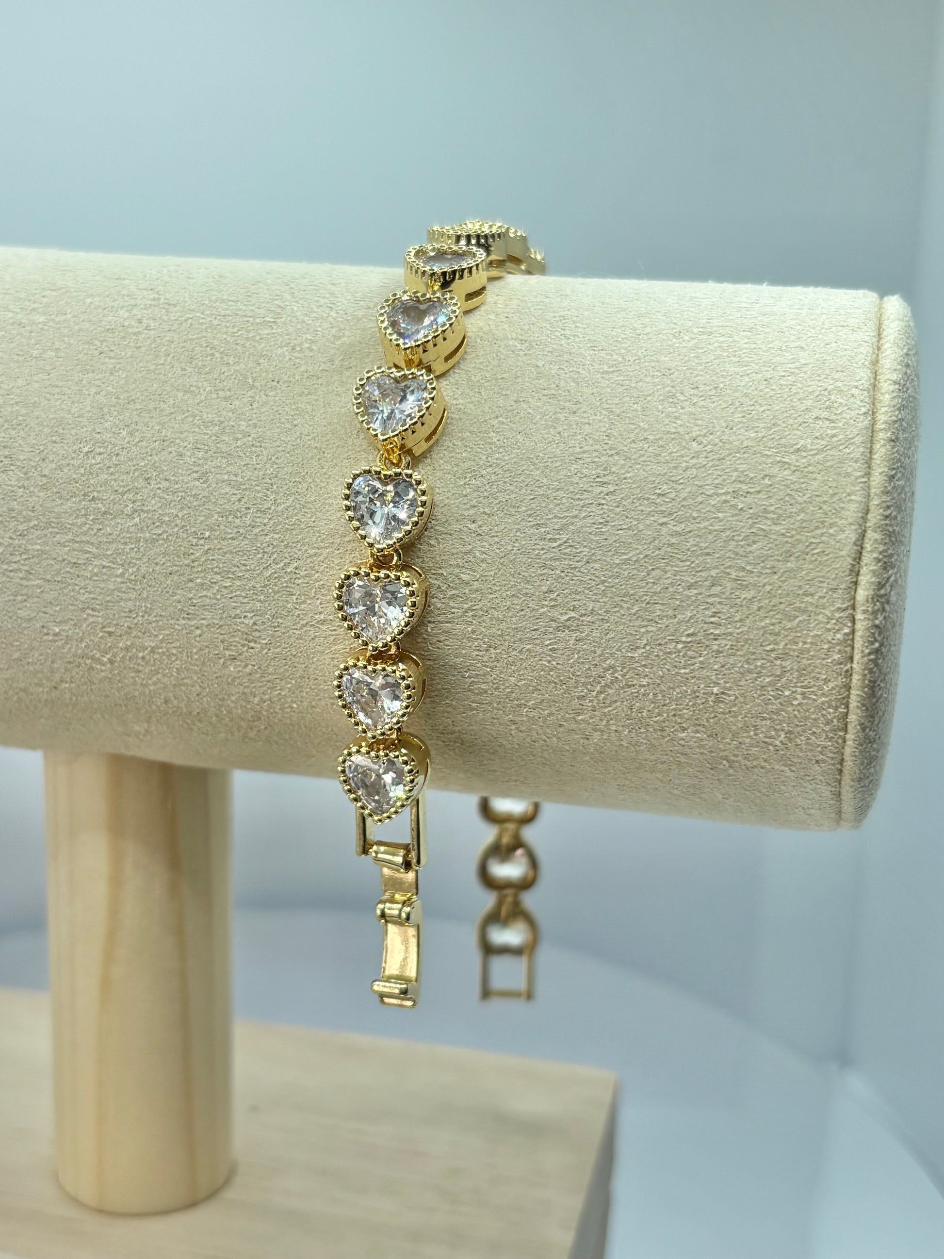 Experience the elegance and charm of our Heart Bracelet. Crafted with 18k gold plating, this delicate piece exudes love and sophistication. Perfect for any occasion, it's a stunning addition to any outfit. Show your passion and style with our Heart Bracelet!
